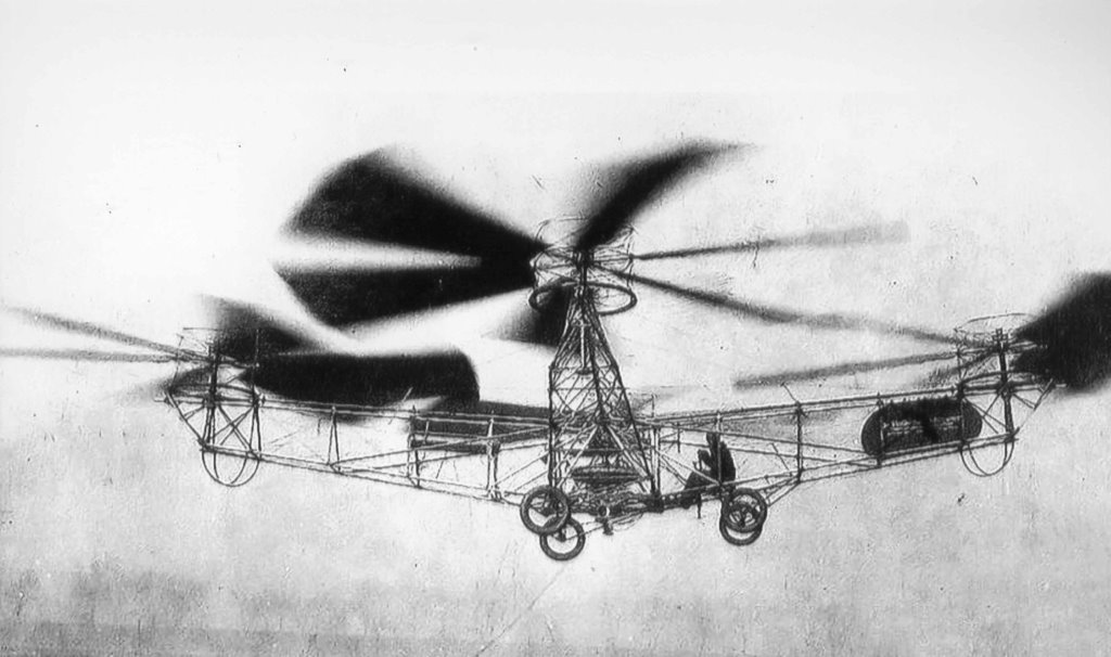 Around 1912 in Russia, Igor Sikorsky and Boris Yur’ev independently began designing vertical-lift aircraft. Both envisioned machines using a main rotor and a tail rotor—an arrangement that would later define modern helicopters—though their early creations lacked the power needed for sustained flight.