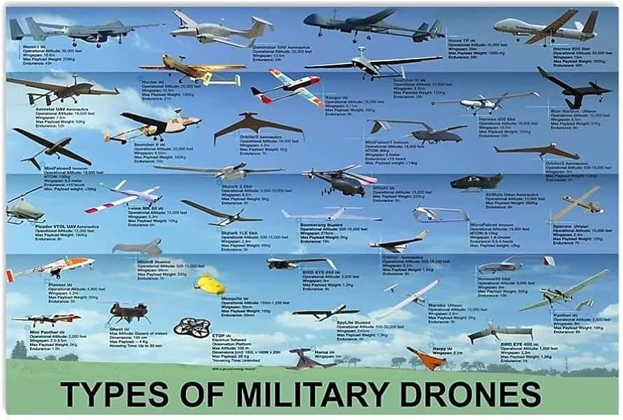 Long-range and high-altitude drones — Able to fly above 30,000 feet and stay aloft for 36 hours or longer, enabling global surveillance missions.